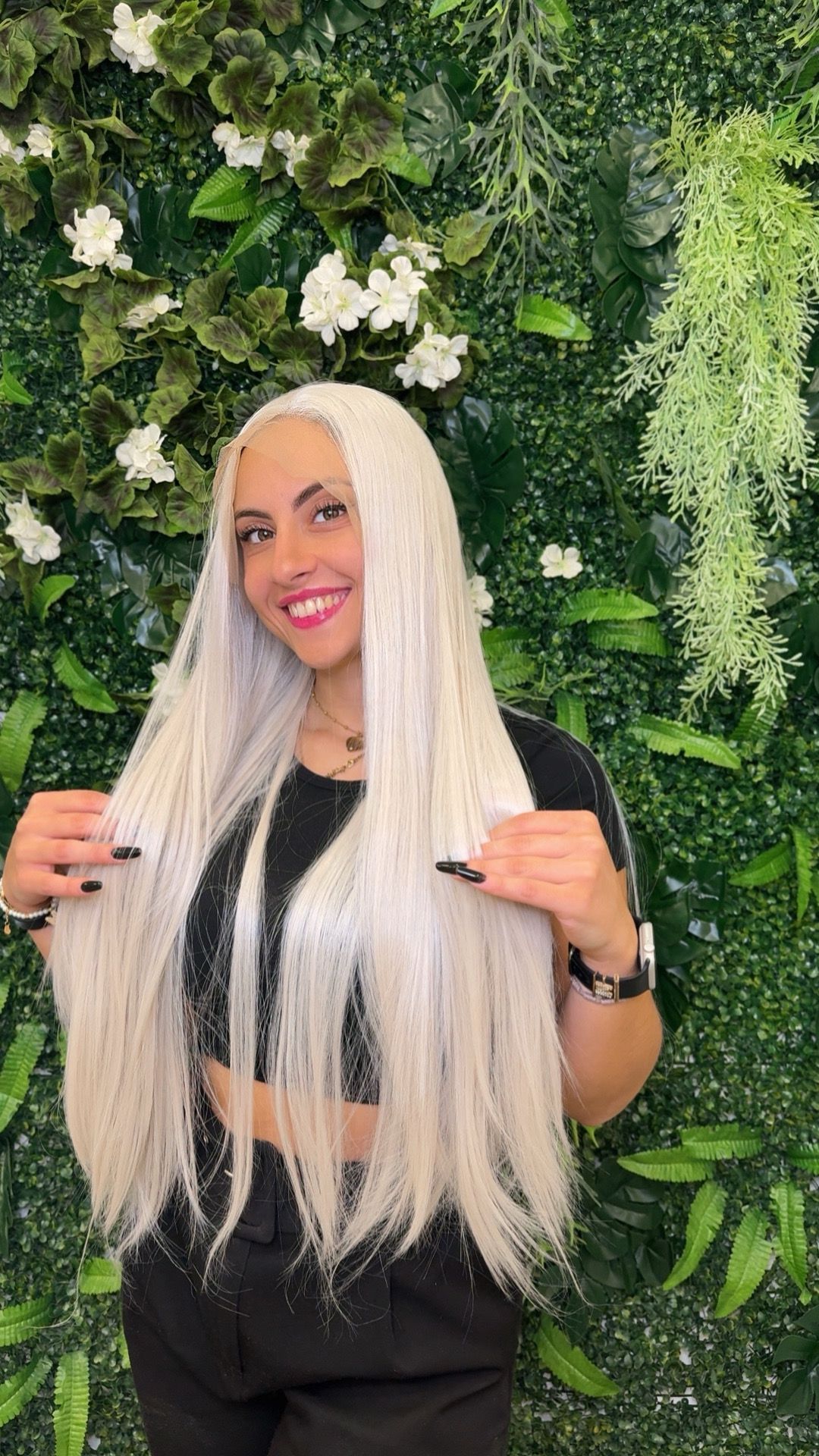 Olly è una dichiarazione di stile glaciale. Il suo colore bianco ghiaccio ultra pigmentato conquista al primo sguardo, mentre la lunghezza extra e la texture liscia regalano un look moderno e magnetico, perfetto per chi ama distinguersi.