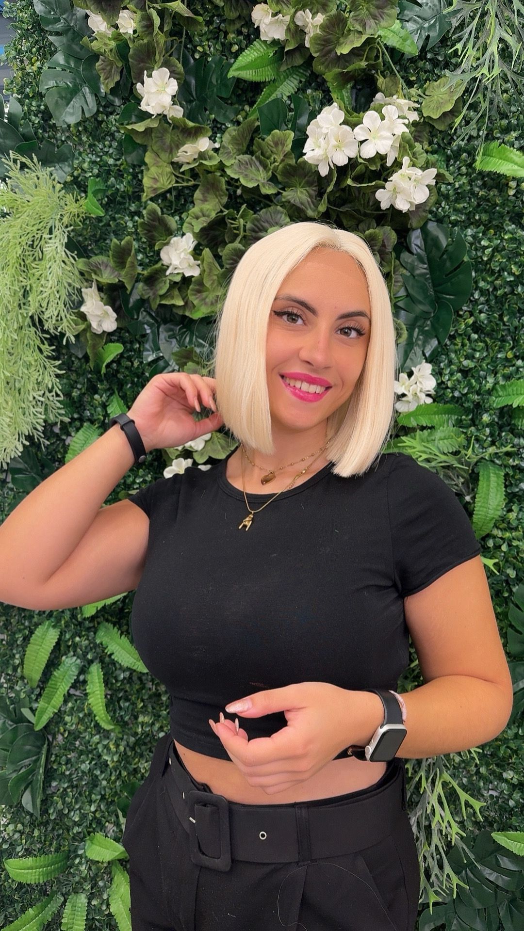 Alia è l’icona del biondo freddo: un caschetto liscio e luminoso dal taglio elegante e preciso. Il colore platino dona luminosità al viso e un look deciso, ideale per chi ama distinguersi con stile.