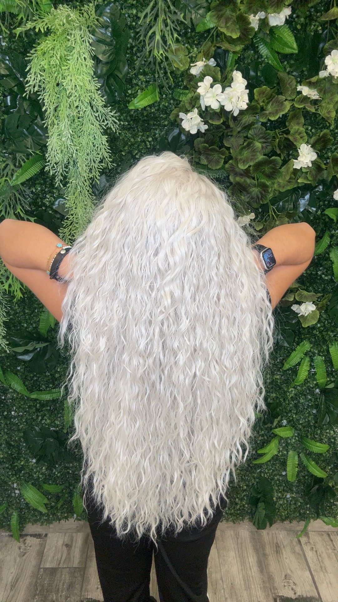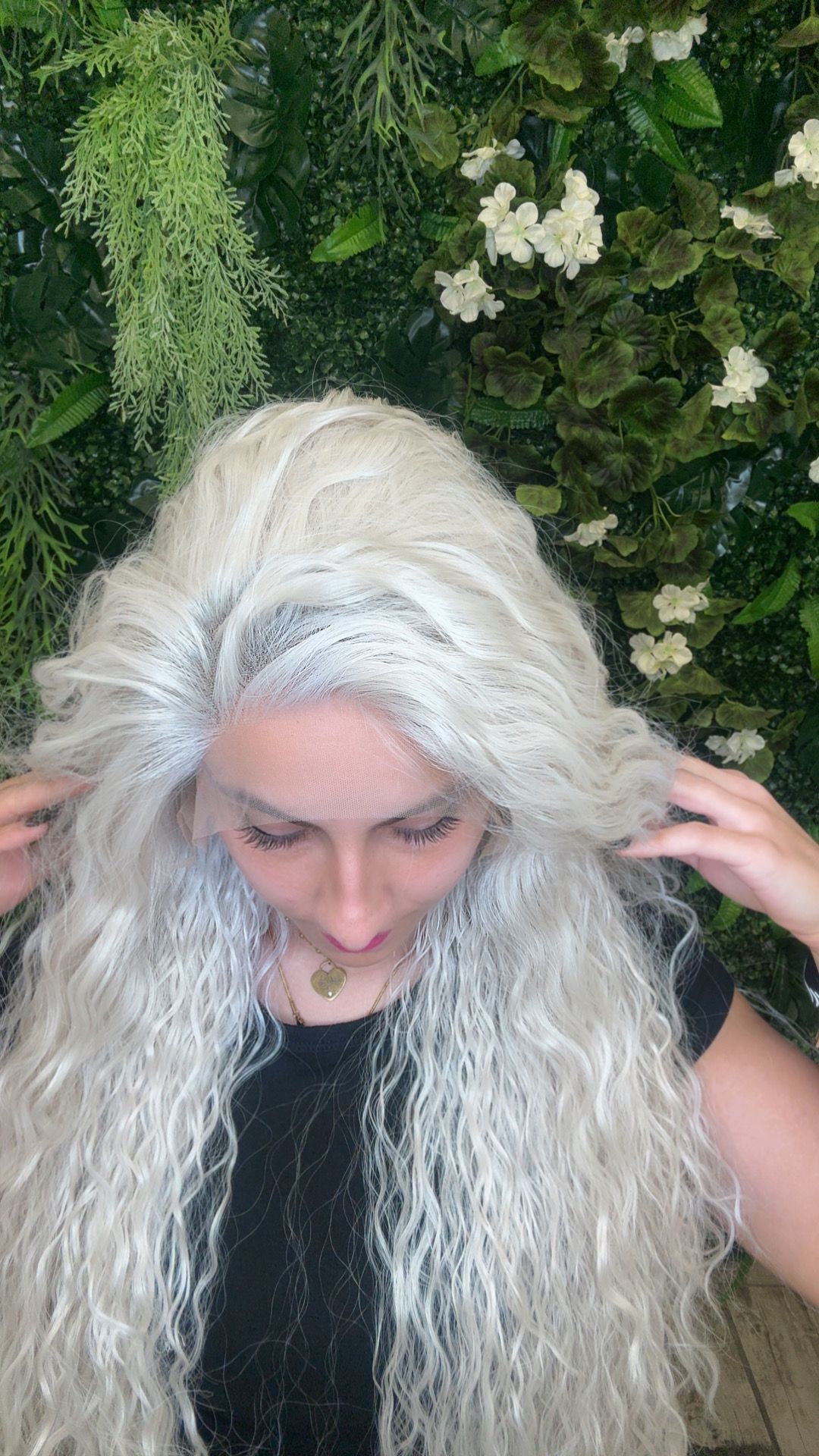 Parrucca lunga riccia bianco ghiaccio – Modello Brooke