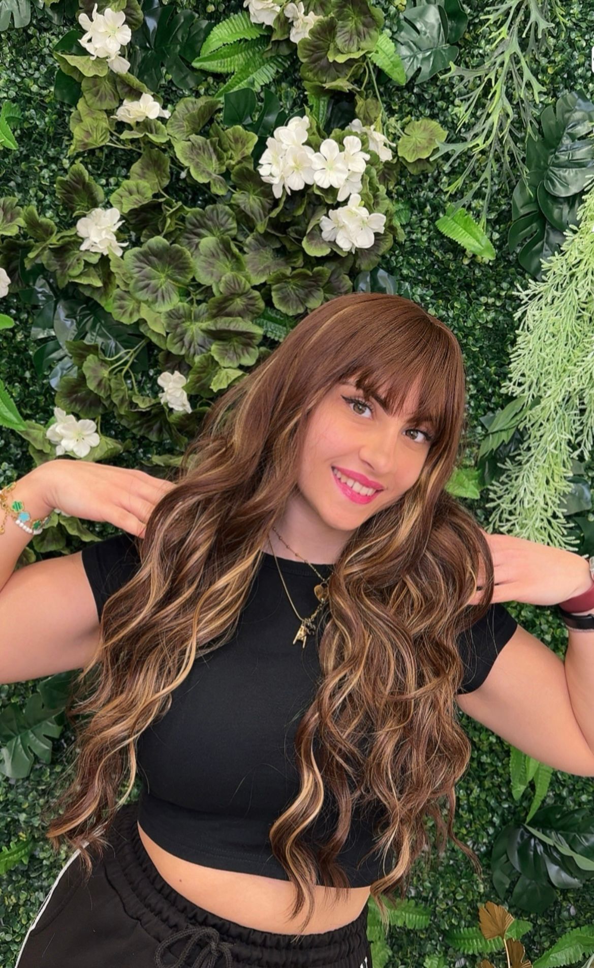 Parrucca lunga con onde morbide e frangia – stile estivo e glamour