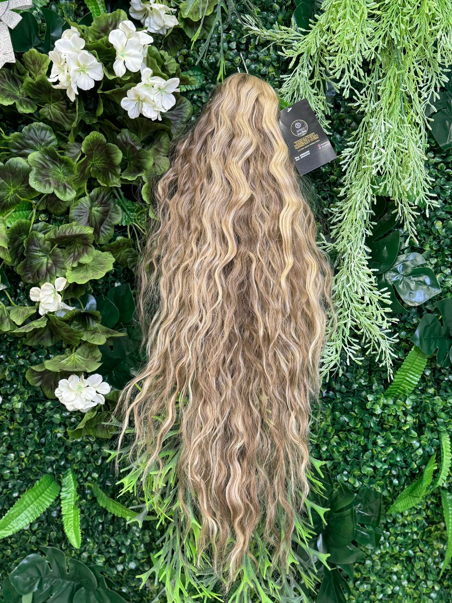 Coda Pony in termofibra, in tonalità biondo oro con colpi di sole biondo chiaro