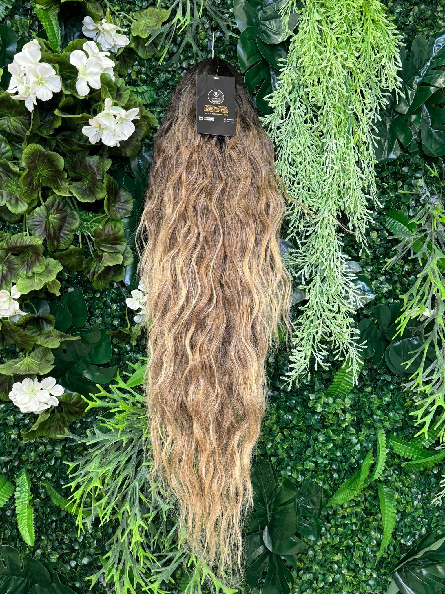 Coda Pony in termofibra, tonalità base castano cenere lunghezze biondo oro