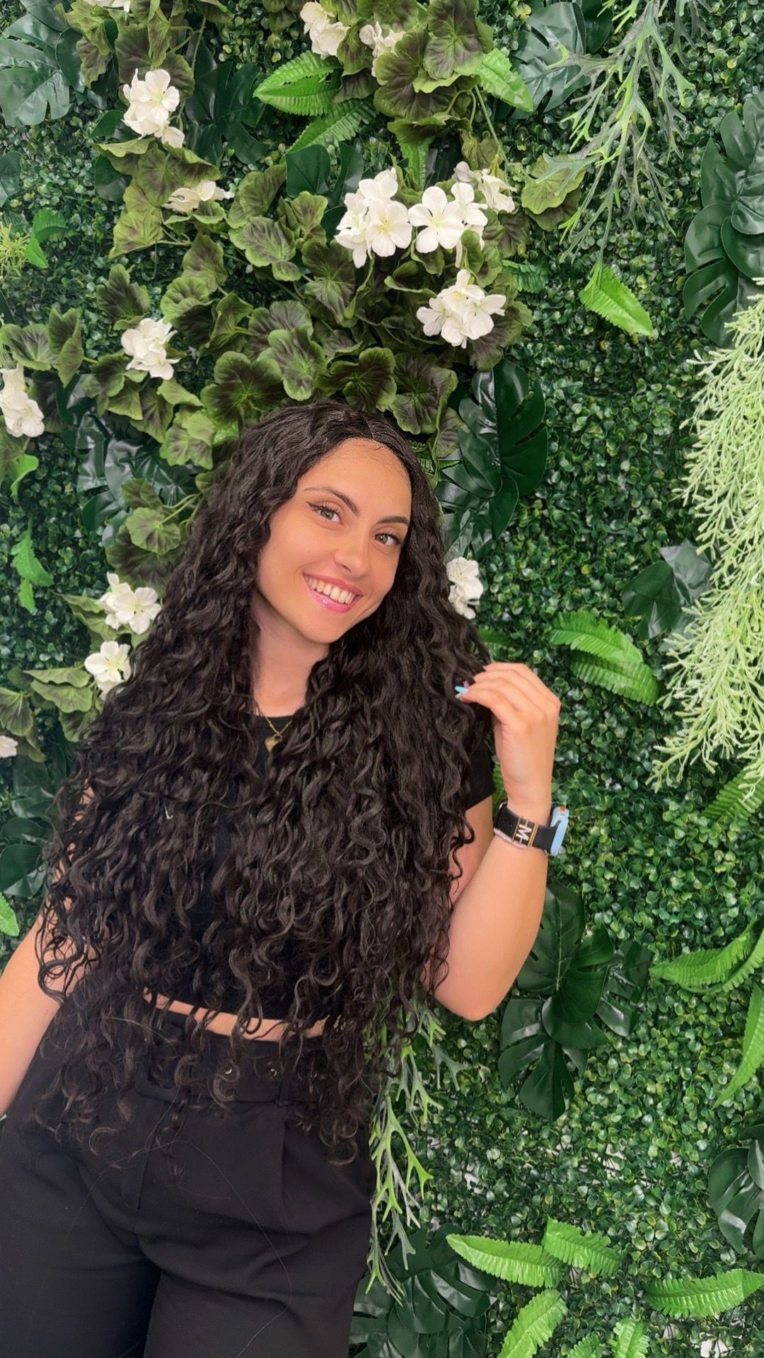 Parrucca lunga riccia nera con volume naturale